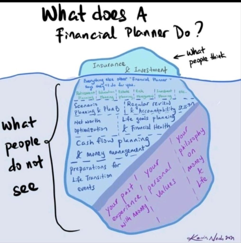 People think that a Financial Planner only gives insurance and investment suggestions and manages investments.