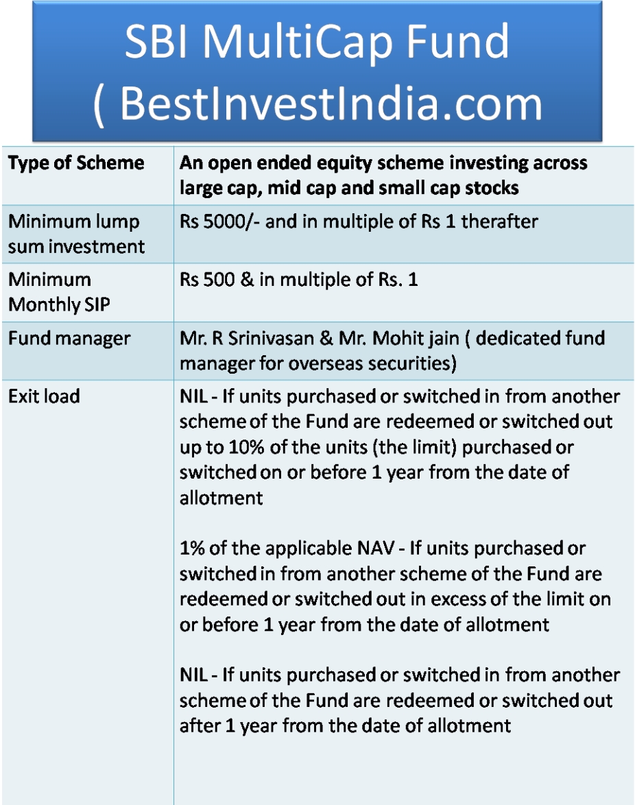 If you are not much aware of different market caps investment and want a hassle free investment then SBI Multicap Fund is a good option.